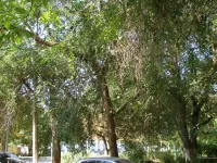 У дороги по Суворова в Керчи аварийные ветви деревьев ждут спила