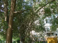 Деревья с раскидистой кроной, растущие вдоль дороги у дома № 25 по улице Суворова, могут не выдержать очередной непогоды.