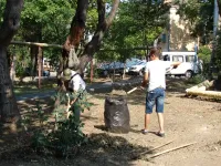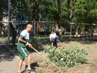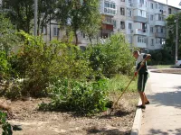 Сегодня еще продолжается расчистка от травы клумбовых зон.