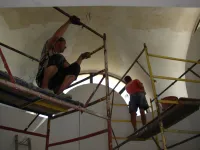 Строители ведут их сегодня внутри помещения под самым куполом.