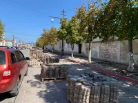 Строители продолжают демонтаж старой тротуарной плитки на улице Козлова.