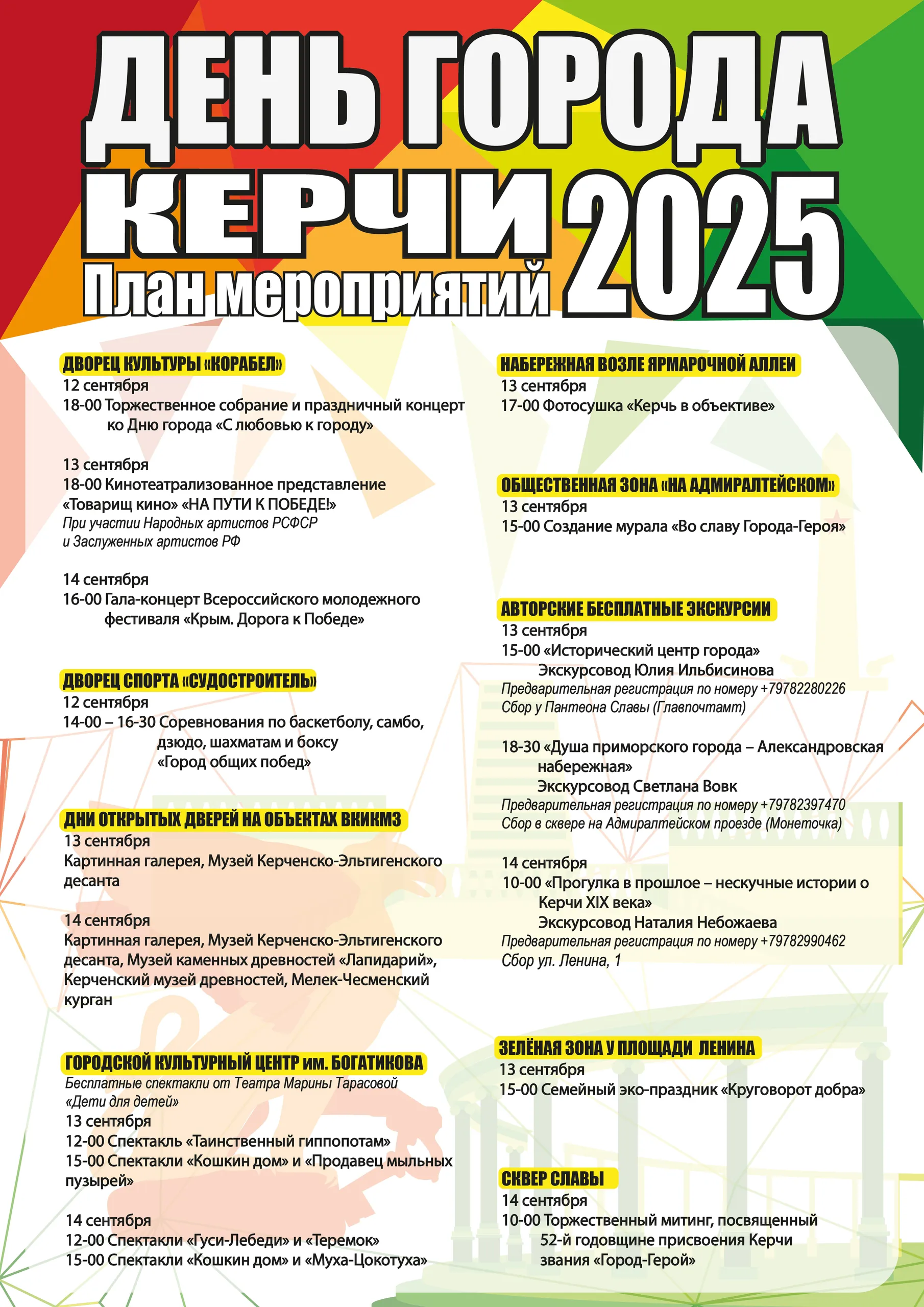 В следующие выходные Керчь будет отмечать День города. Администрация Керчи опубликовала афишу праздничных мероприятий, - передает КерчьФМ