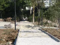 На новых дорожках, ведущих от супермаркета "Яблоко" к самой аллее, также обустройство тротуара продвигается быстрыми темпами.