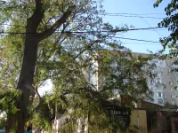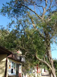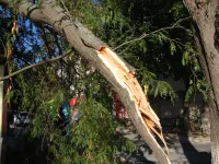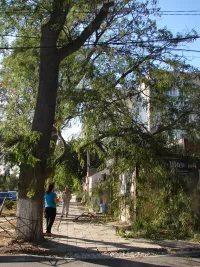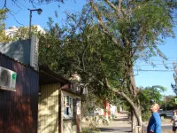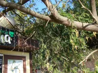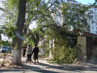 Субботний сильный ветер в Керчи уронил большую ветку на крышу торгового павильона