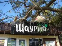 Огромная ветка дерева, растущего у перекрестка Кирова-Сморжевского, обрушилась в субботу в районе 16:30 на торговый павильон Шаурмы "Кинза".