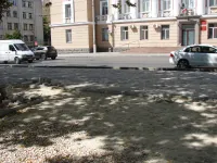 Начиная от остановки "Музей" и немного не доходя до участка напротив пешеходного перехода у здания ЮГНИРО, новая тротуарная плитка уже уложена.