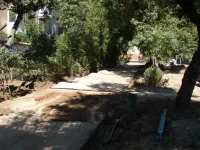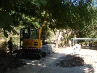 -Практически завершены работы по демонтажу старых бордюров и подготовлены траншеи под установку новых. Уже приступили к их укладке.