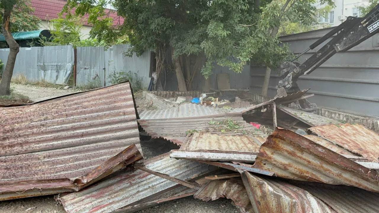 Сегодня с помощью тяжелой техники демонтировали металлический гараж во дворе многоквартирного дома по ул. Советской, 7.