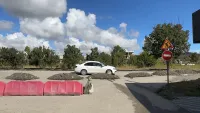 Перед перекрытым участком дороги установили предупреждающие дорожные знаки.