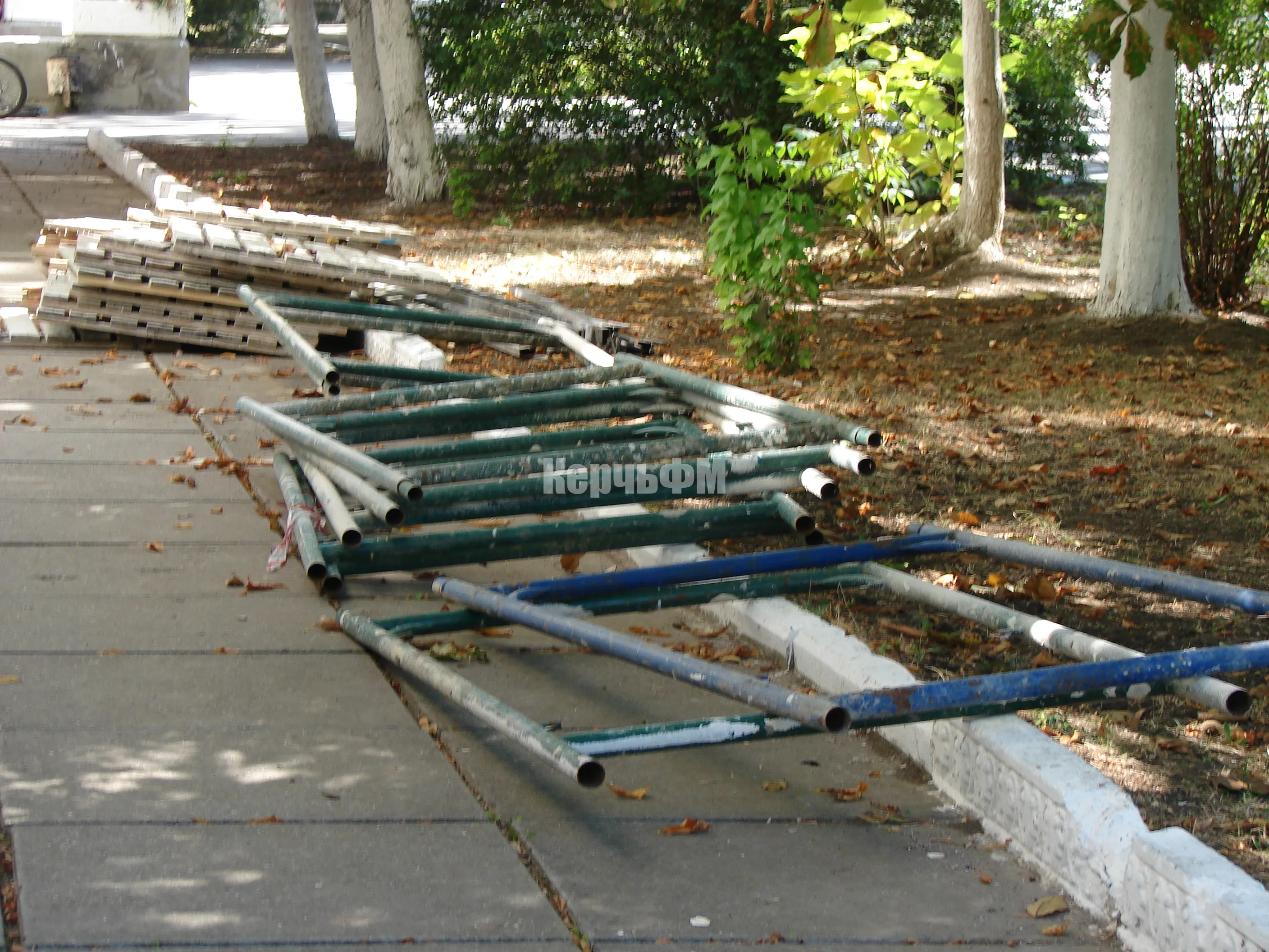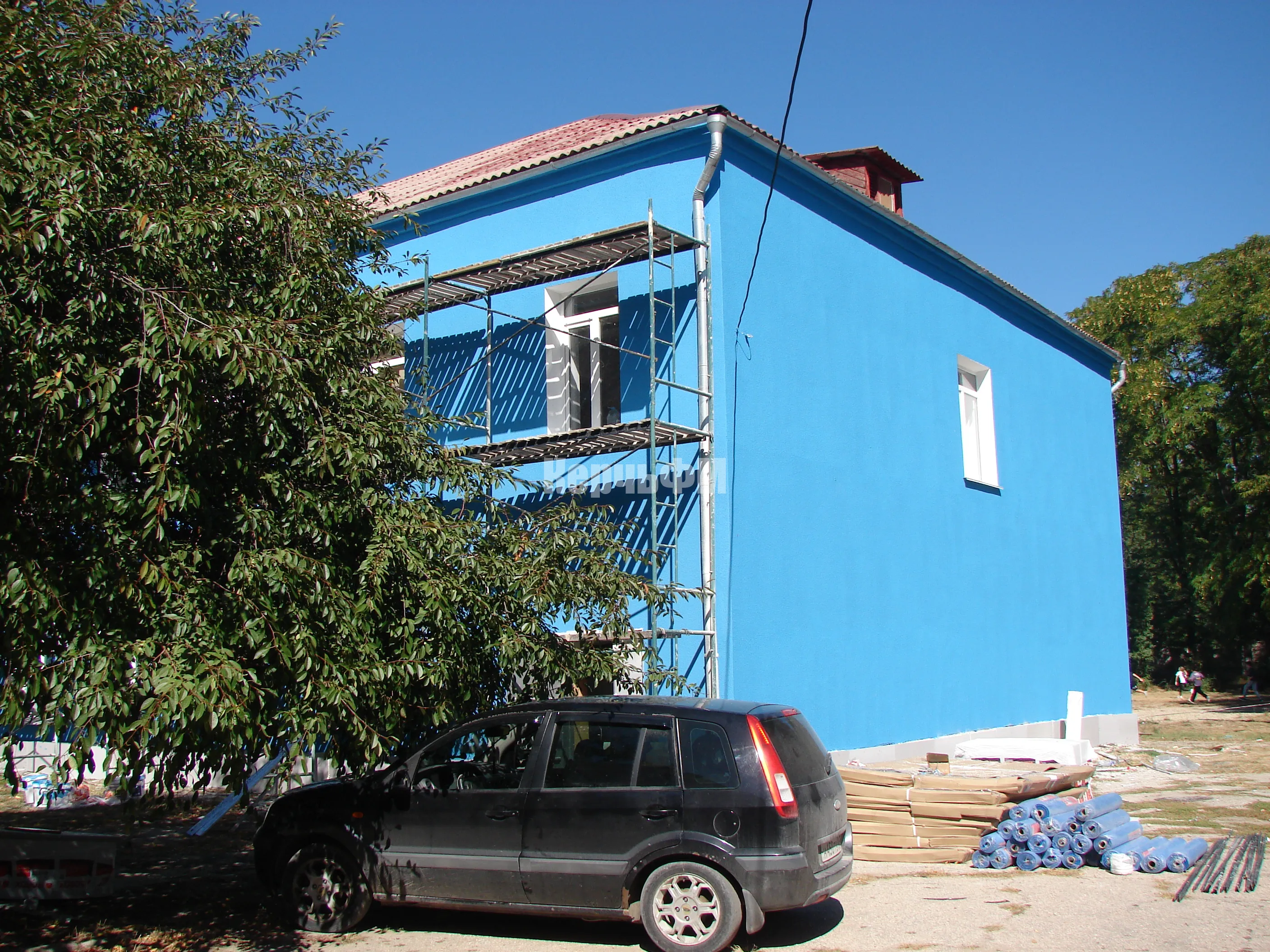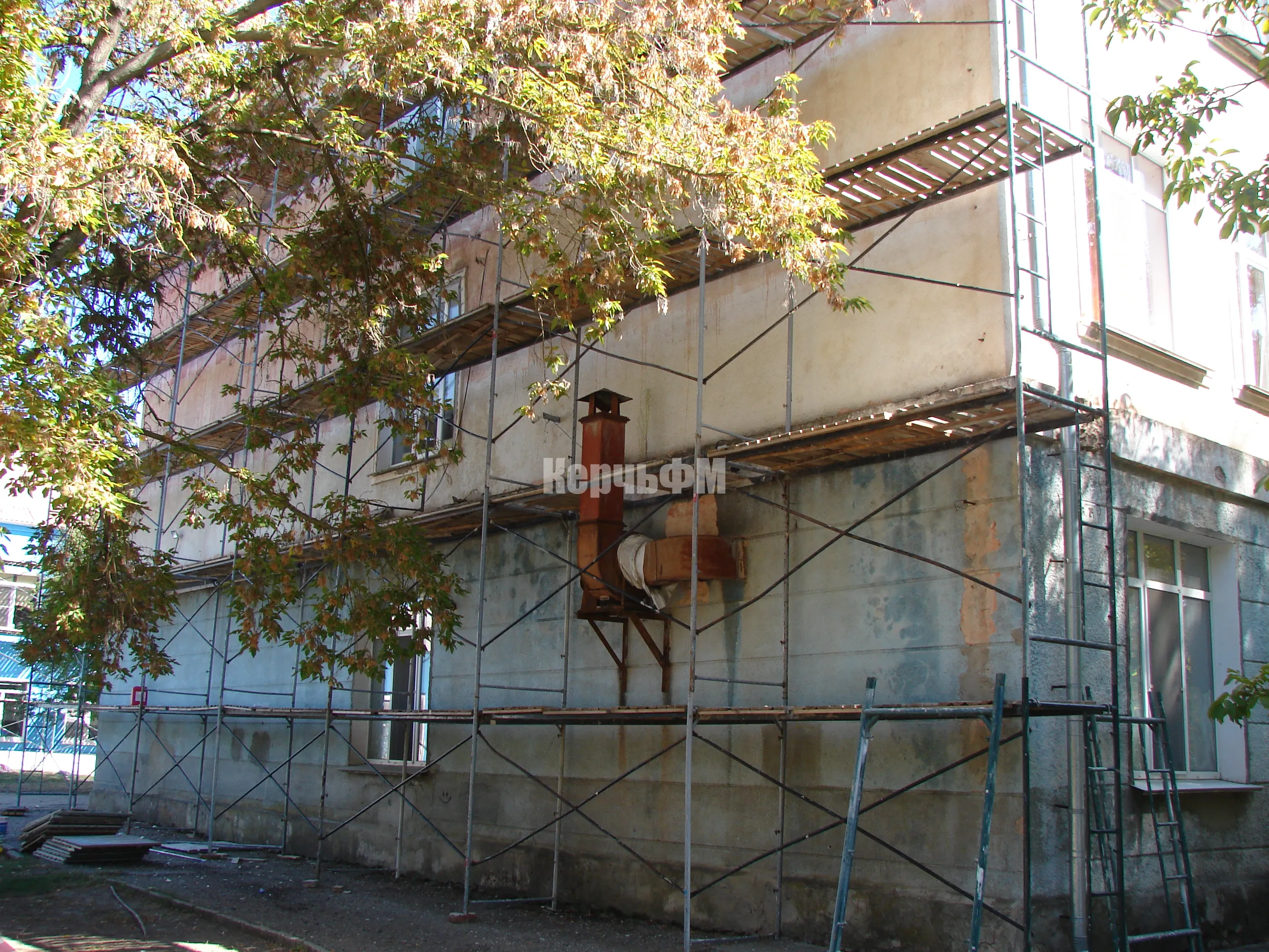 С торцевой части основного здания возвели леса для продолжения фасадных работ, передает КерчьФМ.