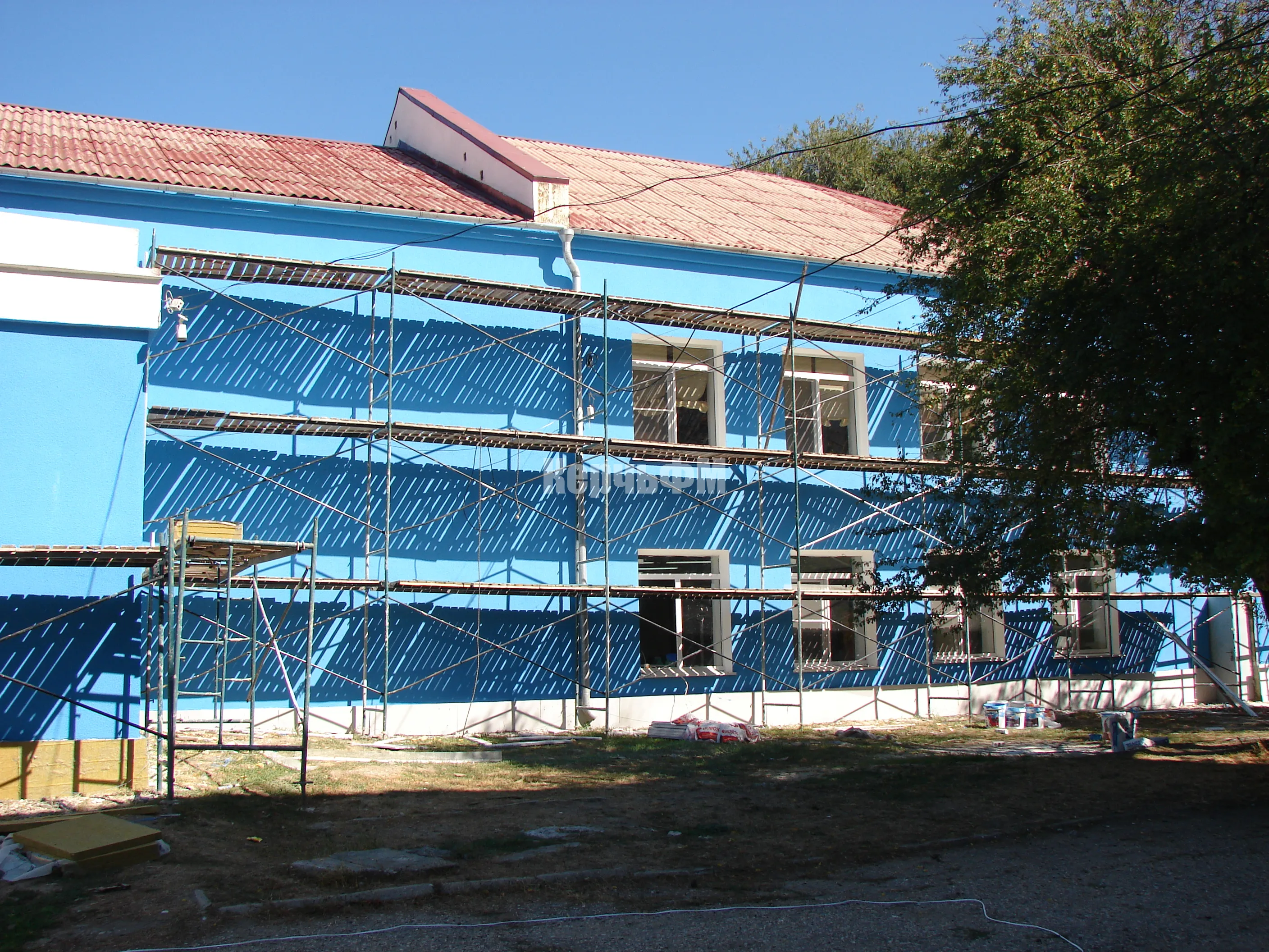 Фасадные работы, где учащиеся занимаются физкультурой, где есть также кабинеты по технологии и другие, практически завершены.
