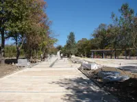 На центральной аллее Приморского парка ведется укладка тротуарной плитки.