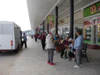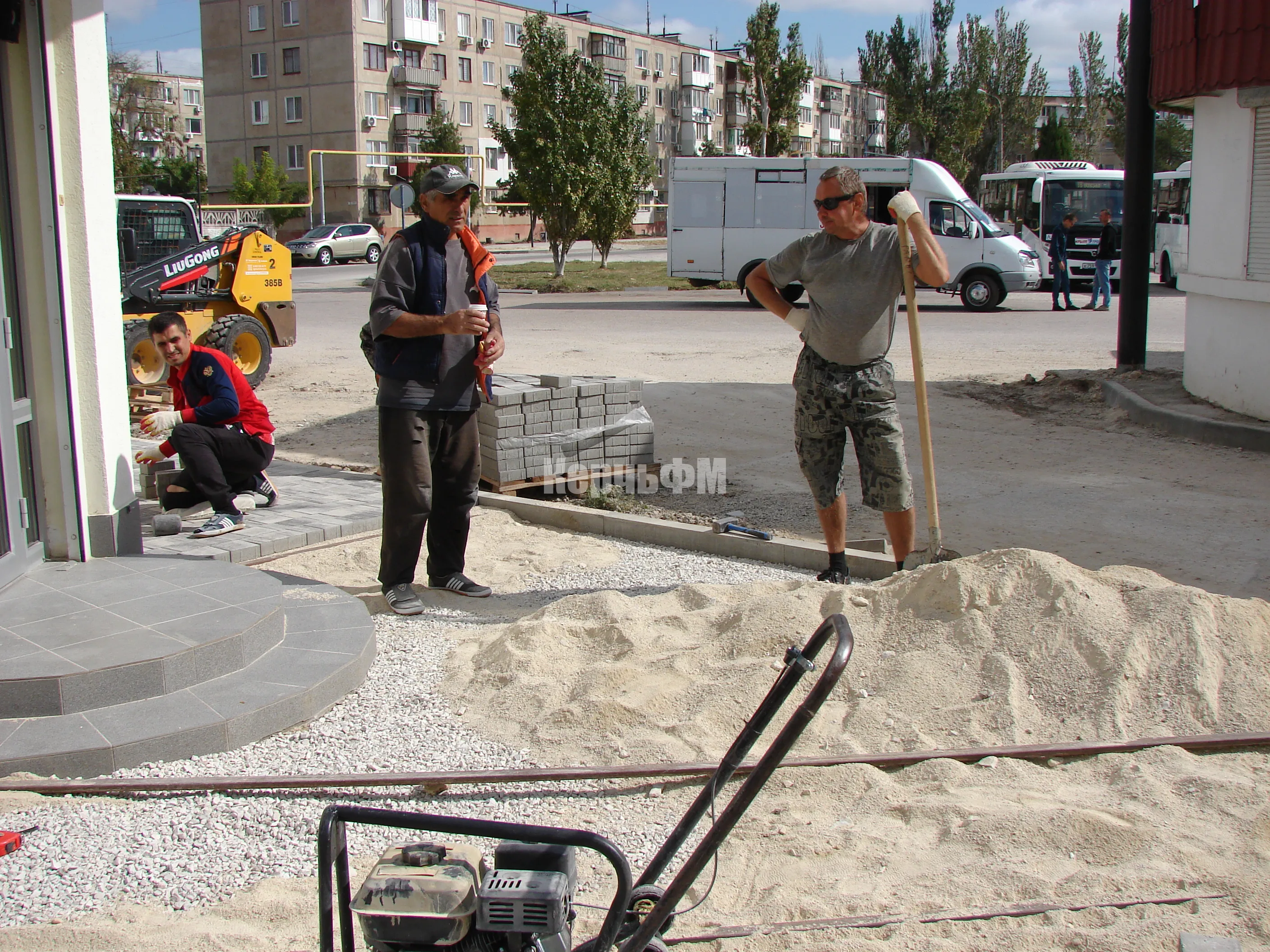 У посадочной платформы автовокзала со стороны улицы Гайдара завершается укладка новой тротуарной плитки.