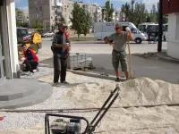 Скорость укладки новых тротуаров у рабочих подрядной организации ИП "Зорина", ведущих благоустройство объекта, достаточно высокая.