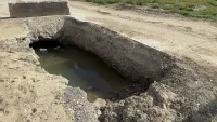 Жители района переживают, что по улице Бодни по одной полосе дороги открыли проезд, а глубокую яму никто нормально не оградил. Только с одной стороны поставили бетонный блок. С другой же ничего не мешает автомобилю или пешеходу упасть в эту ловушку.