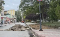 Утром уже перекрыли часть переулка и начали демонтировать бетонные плиты на тротуаре.