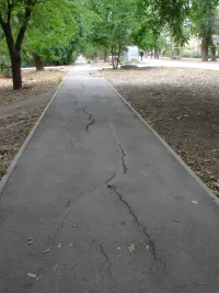 Первые трещины на асфальтовом покрытии появились уже через пару месяцев.