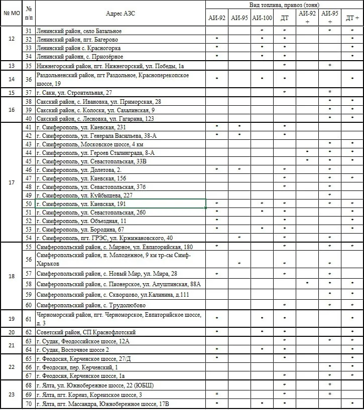 Согласно сегодняшнему списку, в Керчи на АЗС по Горького, 3ж в наличии АИ-92 и ДТ.