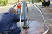 В сквере Солнечном заменили подшипник и другие изношенные детали на карусельке-вертушке, полностью восстановив работоспособность конструкции.