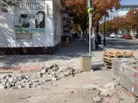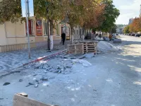 Строители заменили бордюры и уложили около 30% нового покрытия.