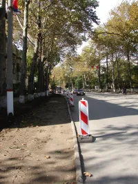 Часть бордюров уже установили вдоль правой полосы движения к центру.