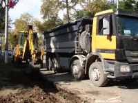 Старые бордюры демонтируют и сразу начинают готовить траншеи к укладке новых.