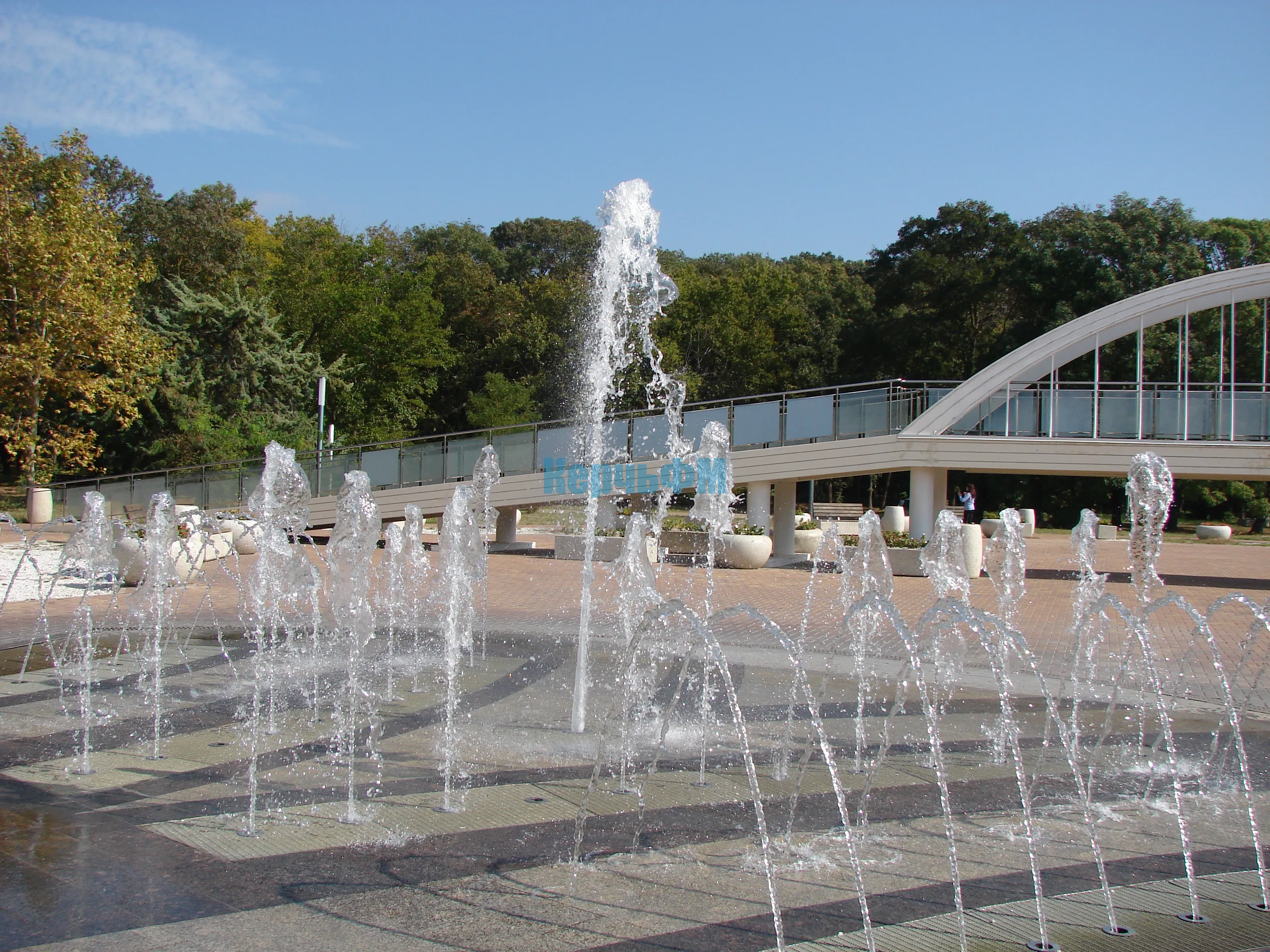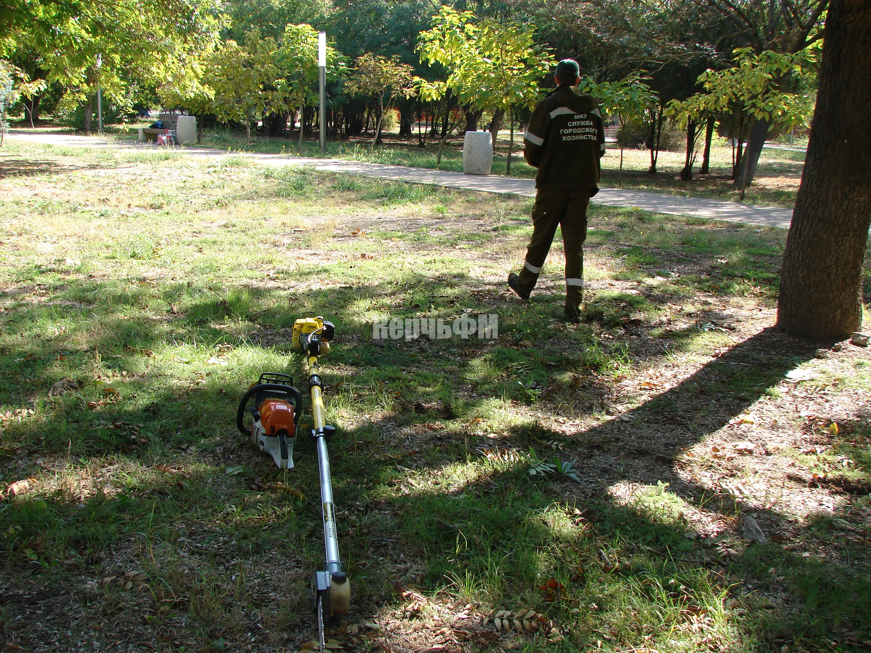 Осенний парк выглядит очень ухоженным и красивым. Работает фонтан, передает КерчьФМ.