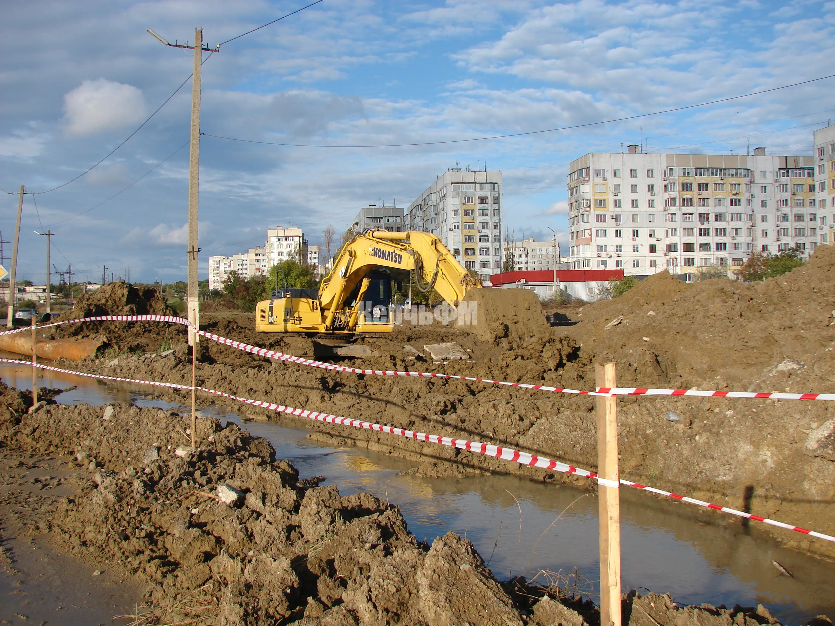 На Индустриальном Шоссе в Керчи ликвидируют озерные разрытия
