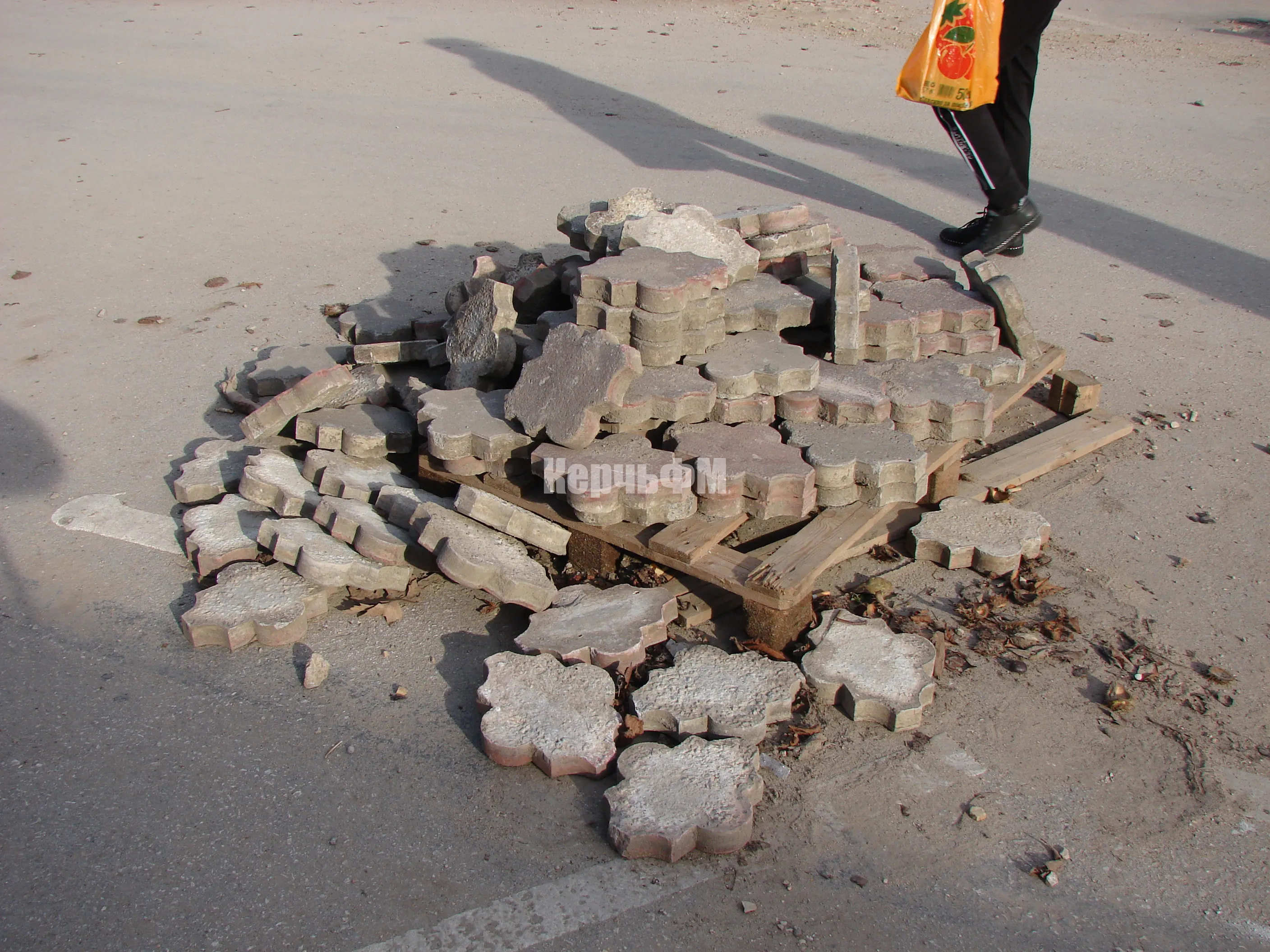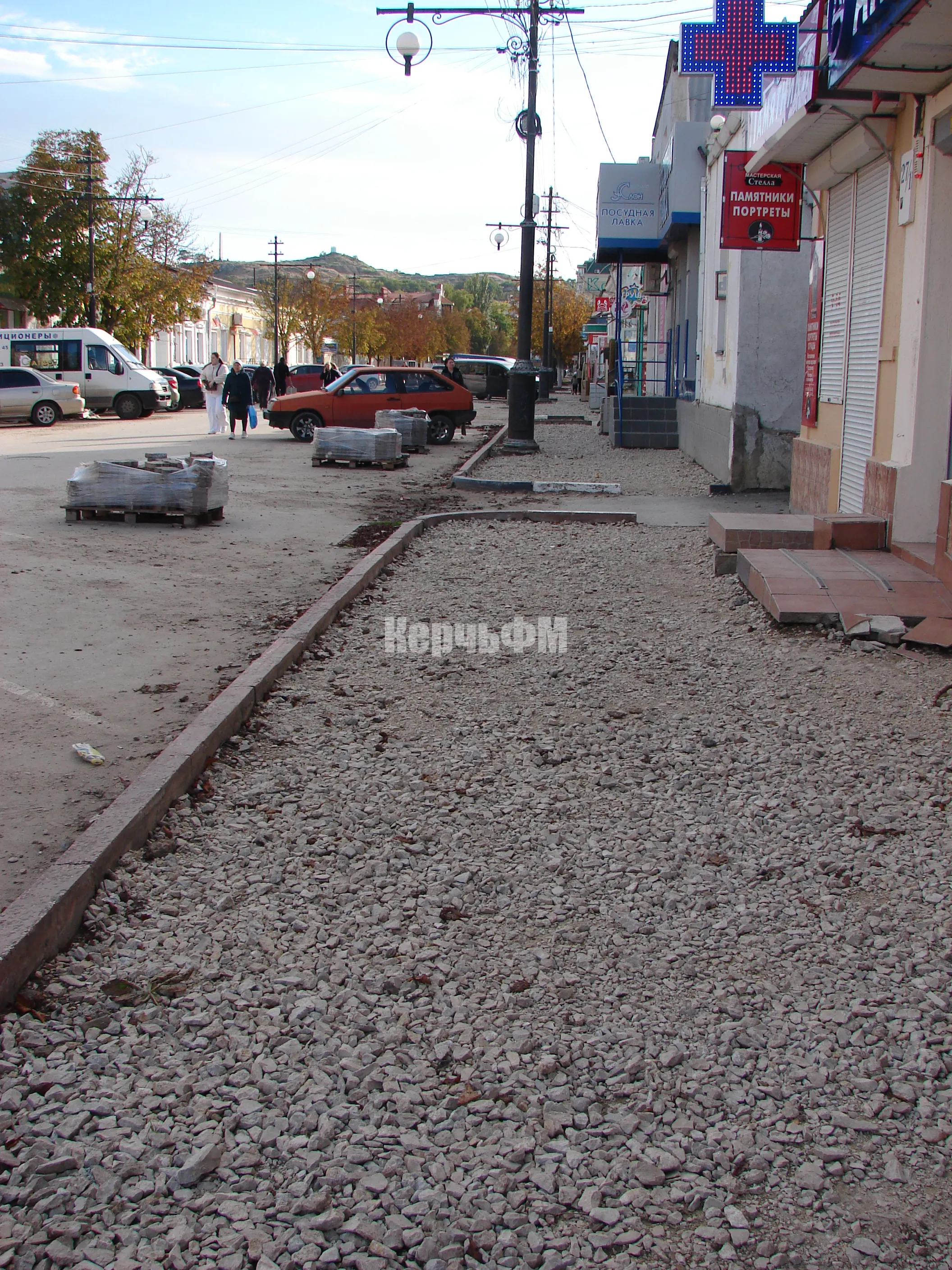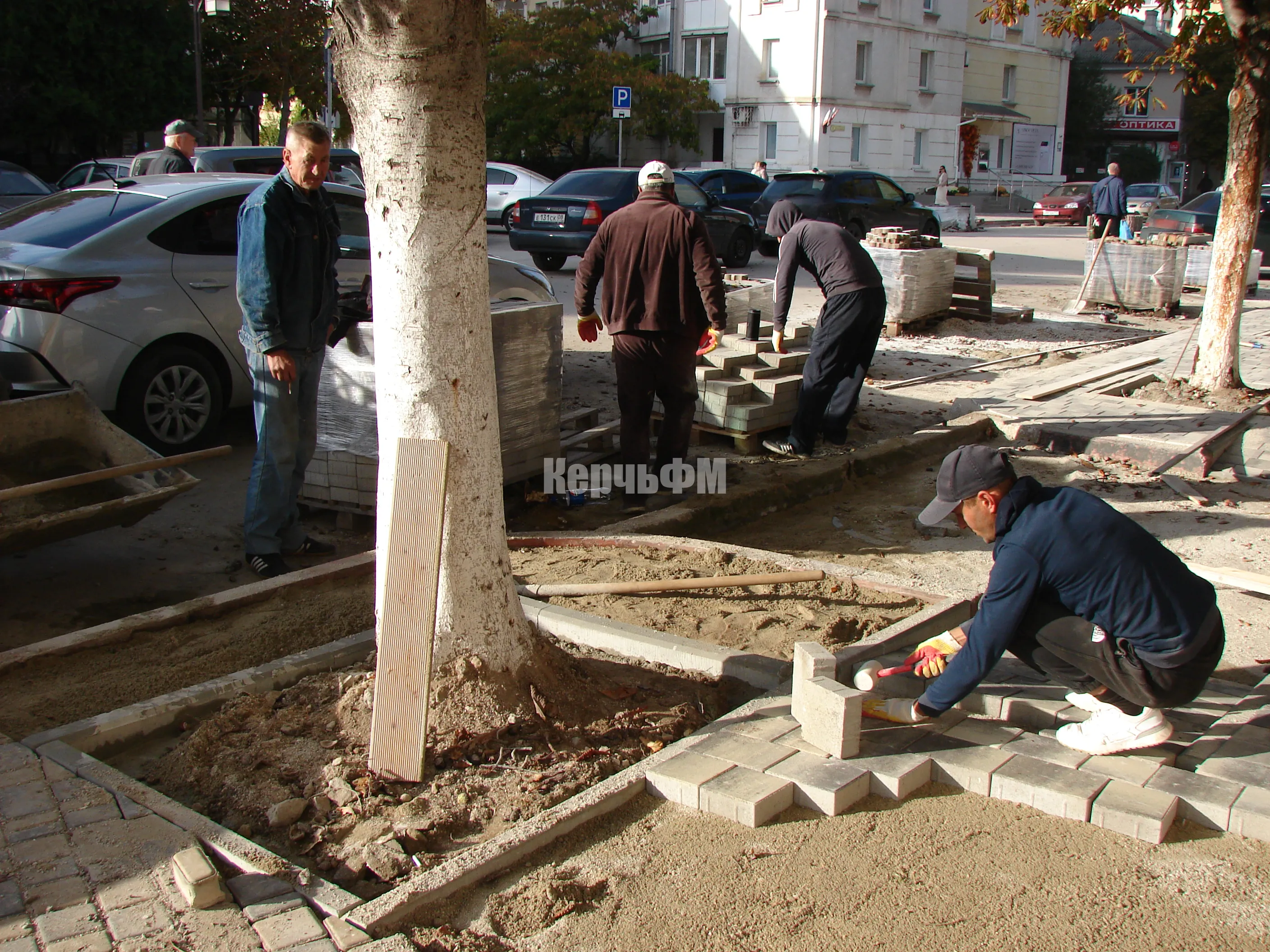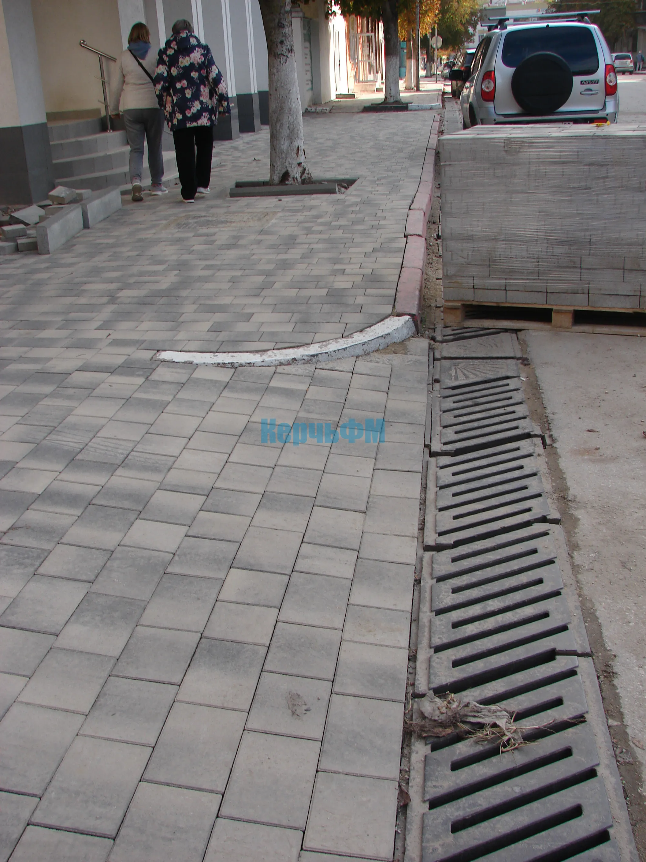 Тротуарная плитка демонтирована полностью и пешеходные дорожки обнесены новым поребриком.