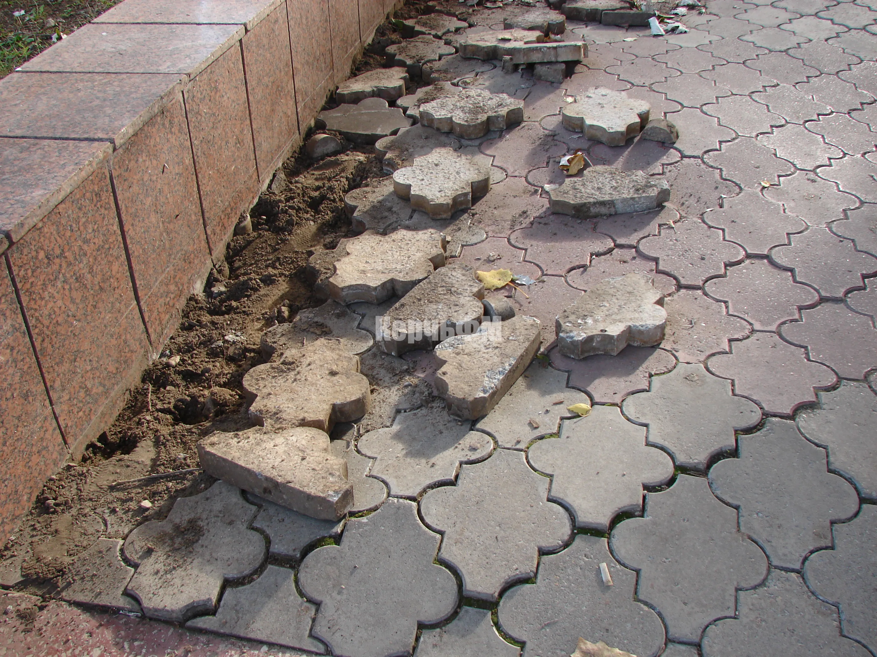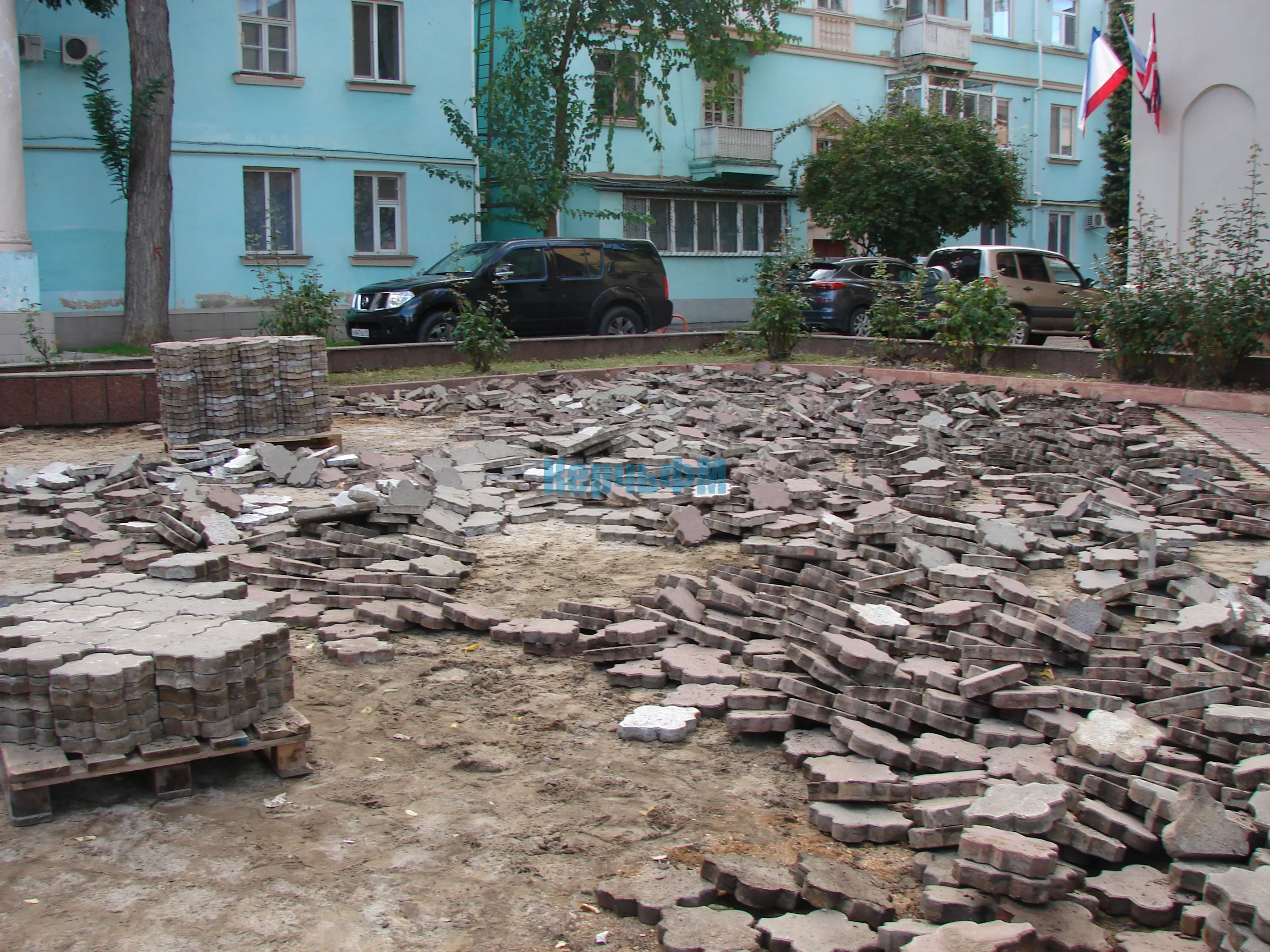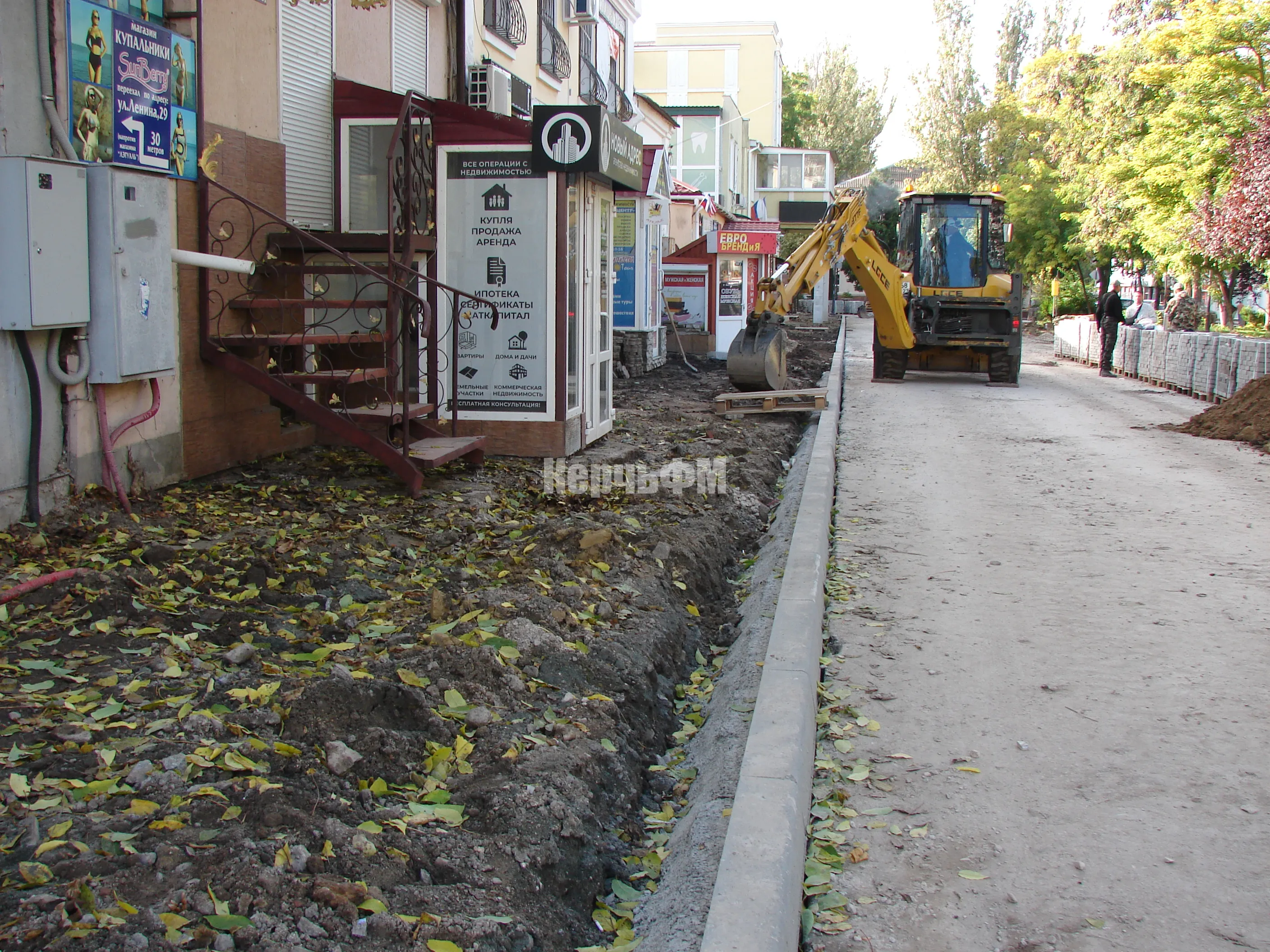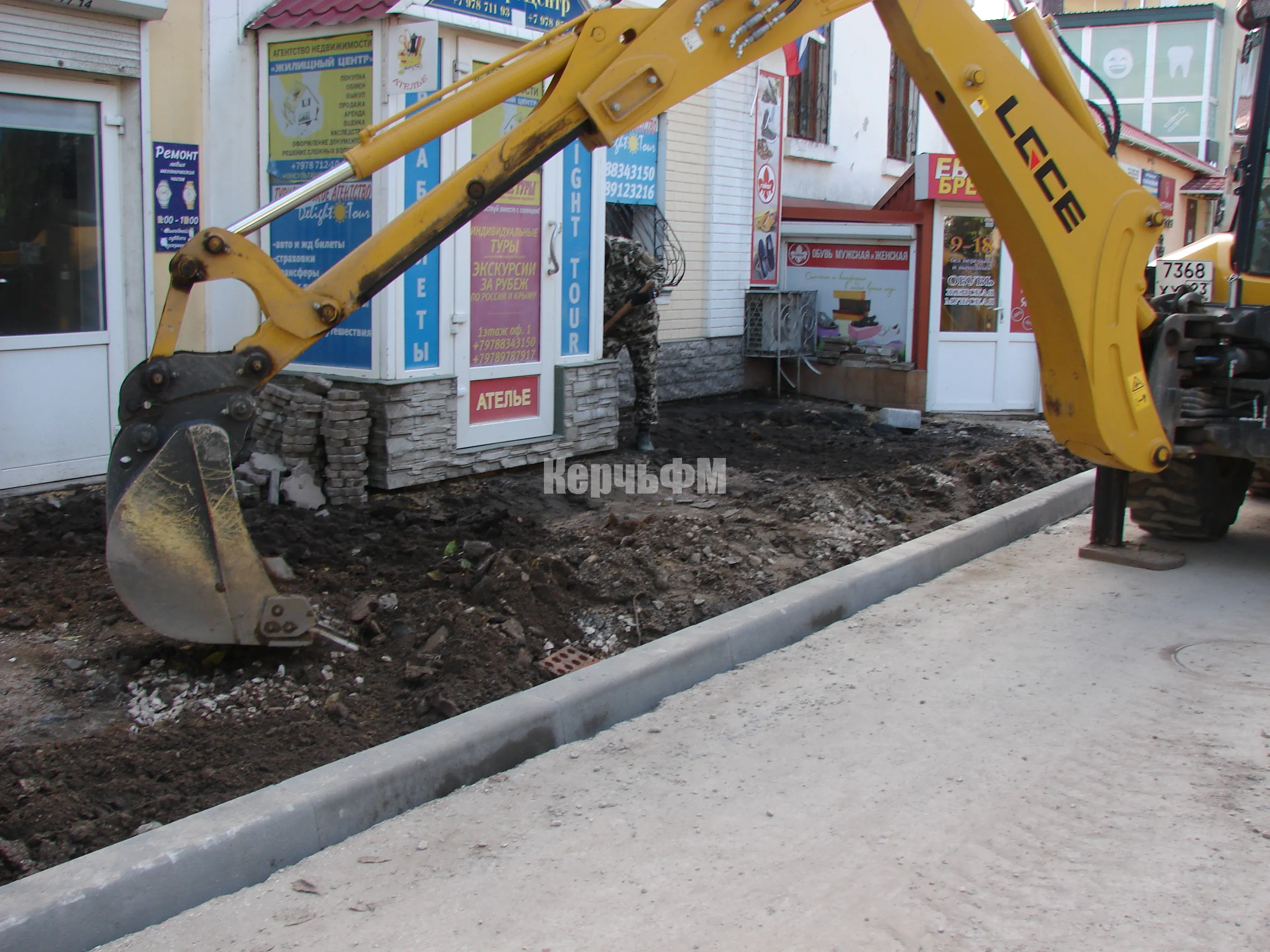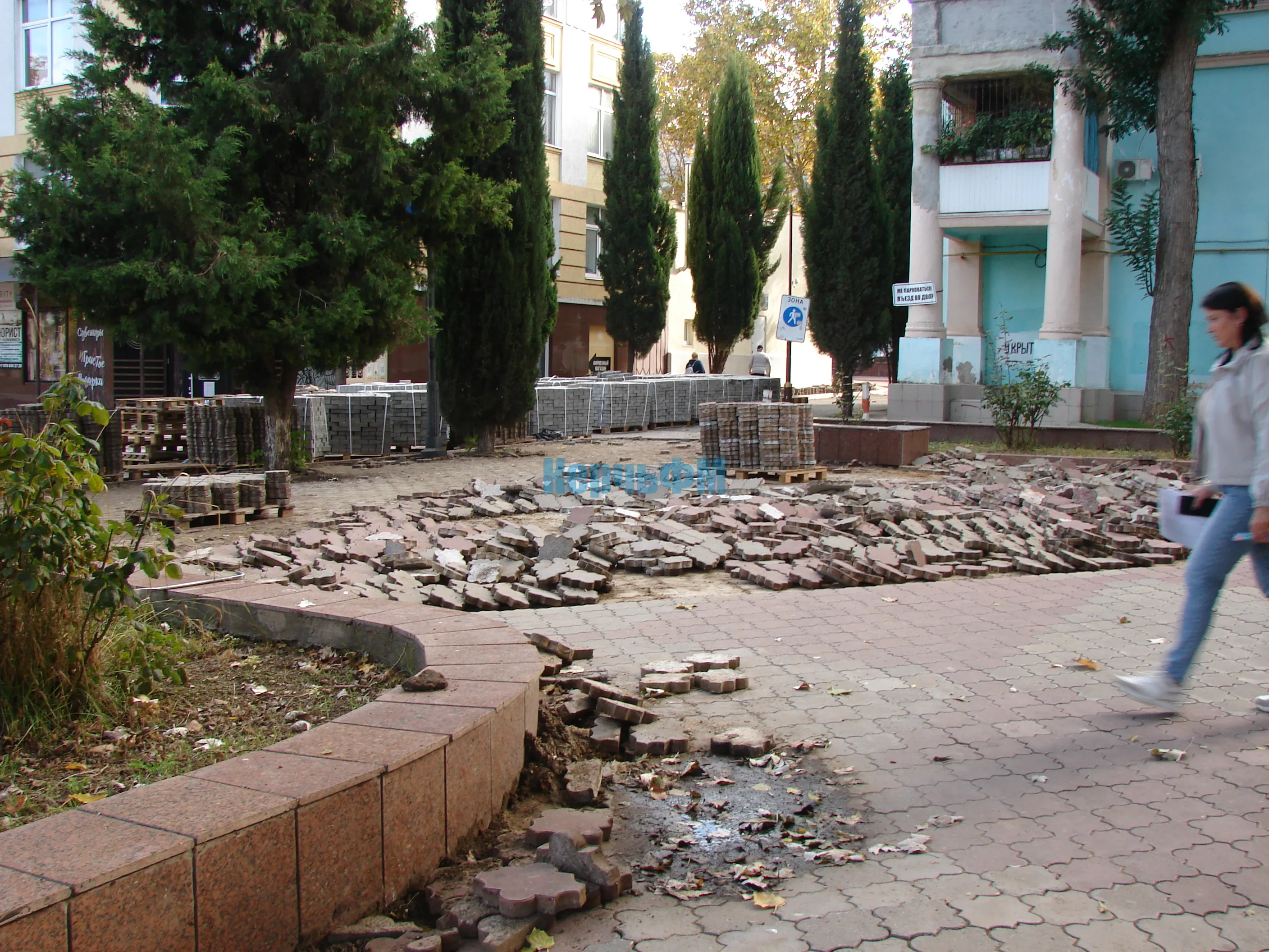 В настоящее время ведется демонтаж тротуарной плитки у здания ВТИ, передает КерчьФМ.