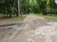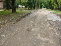 Тротуар вдоль него разбит и если проходит дождь, то вести родителям детей в садик на Энгельса, 8 практически невозможно.