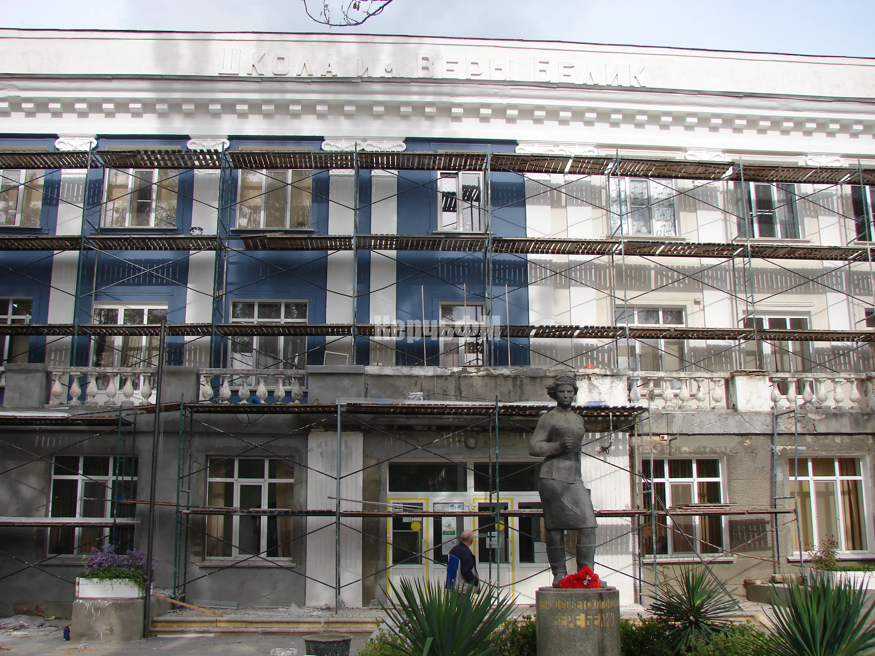 На головном здании школы № 17 имени Веры Белик продолжаются фасадные работы.