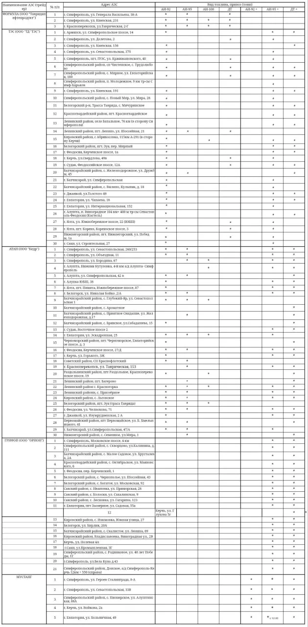 Перечень адресов крымских АЗС, где сегодня имеется топливо в свободной продаже.