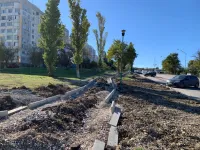 Вдоль дороги-дублера Шоссе Героев Сталинграда обустраивают новый тротуар. С обеих сторон будущей пешеходной дорожки ведется установка бордюров.