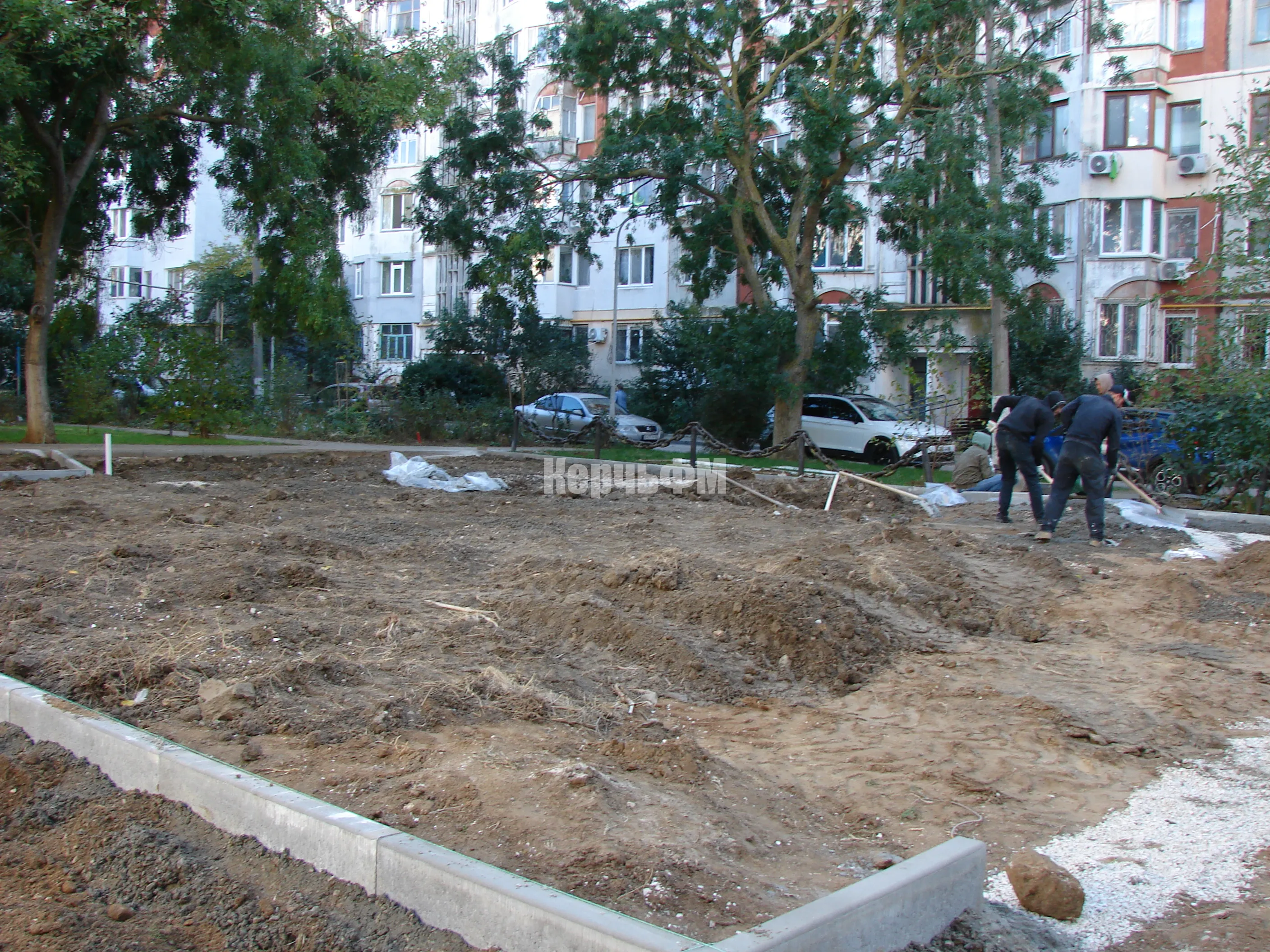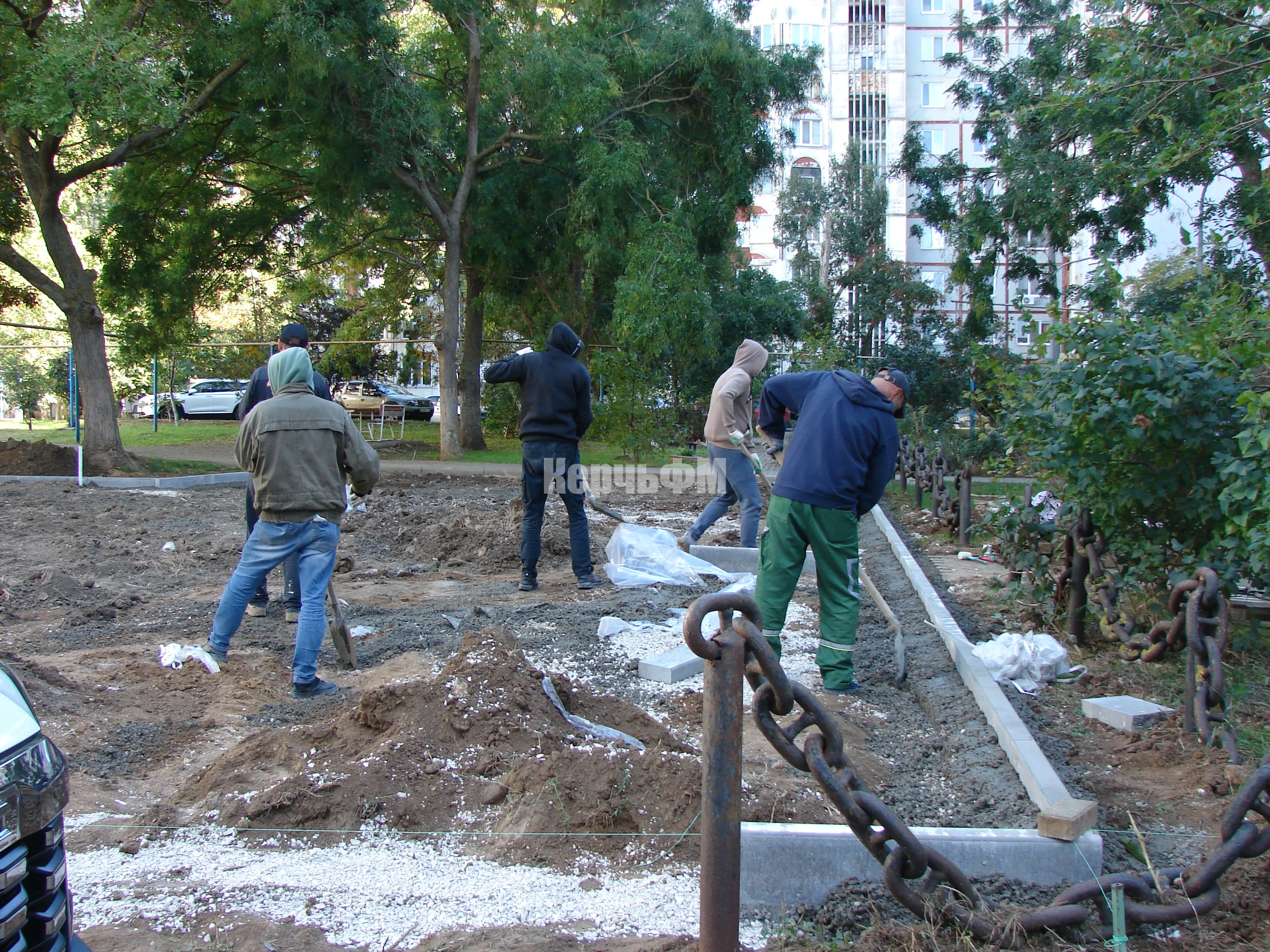 Во дворе по Кирова, 103 маленькую детскую площадку значительно расширили и обнесли поребриком. В настоящее время его укрепляют бетоном. Дальнейшие действия будут те же, что были перечислены выше.