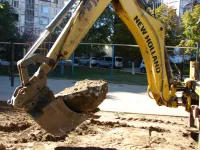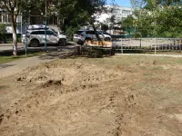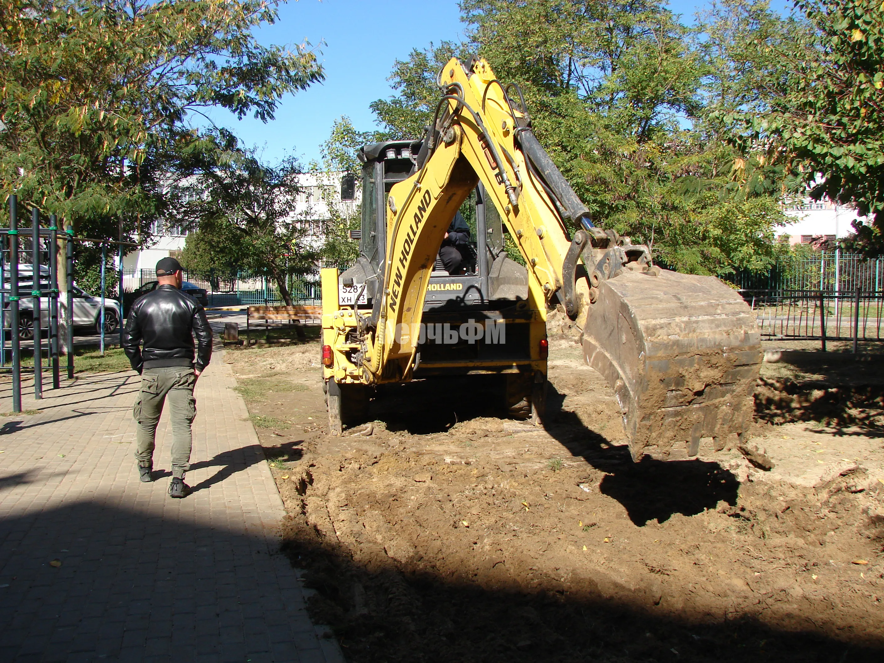 После полного демонтажа всех старых игровых элементов на детских площадках во дворе по Сморжевского, 1 тяжелая техника приступила к подготовке территории для новых.
