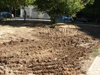 Затем будет завезен щебень, площадку сделают вровень с поребриком тротуара.