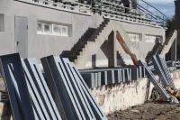 - Сварочные работы по устройству лестниц южной трибуны, покраска деталей, подготовка к установке косоуров - балок, на которые будут укладывать ступени.