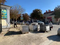 Тротуарная плитка здесь полностью демонтирована. Новая плитка завезена на объект и ждет укладки, передает КерчьФМ.