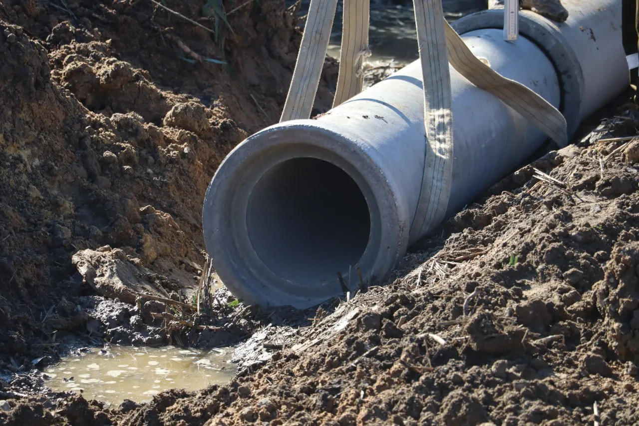Железобетонную трубу диаметром 400 мм прокладывают под дорогой.