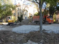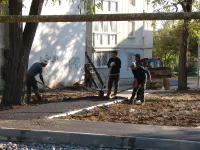 На придомовой территории сразу нескольких МКД района Всесоюзной, 10 работы по благоустройству не сбавляют темпа.