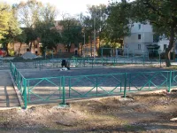 Уложен асфальт на игровых зонах, а также установлено их ограждение.