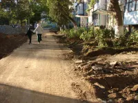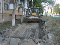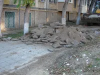 А с фасадной стороны дома начался демонтаж тротуарной плитки.