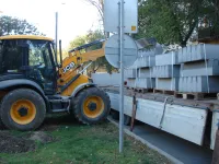 Здесь уже демонтированы все старые бордюры, тяжелая техника завозит и разгружает новые, передает КерчьФМ.