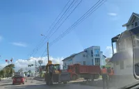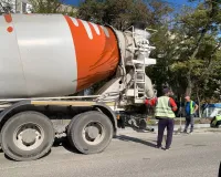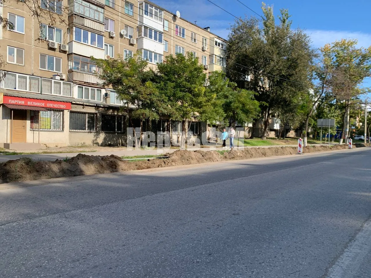 Демонтаж бордюров практически завершен. Работает несколько единиц тяжелой техники.