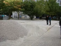 Отсев разравняют и утрамбуют. Затем наступит очередь установки новых элементов.