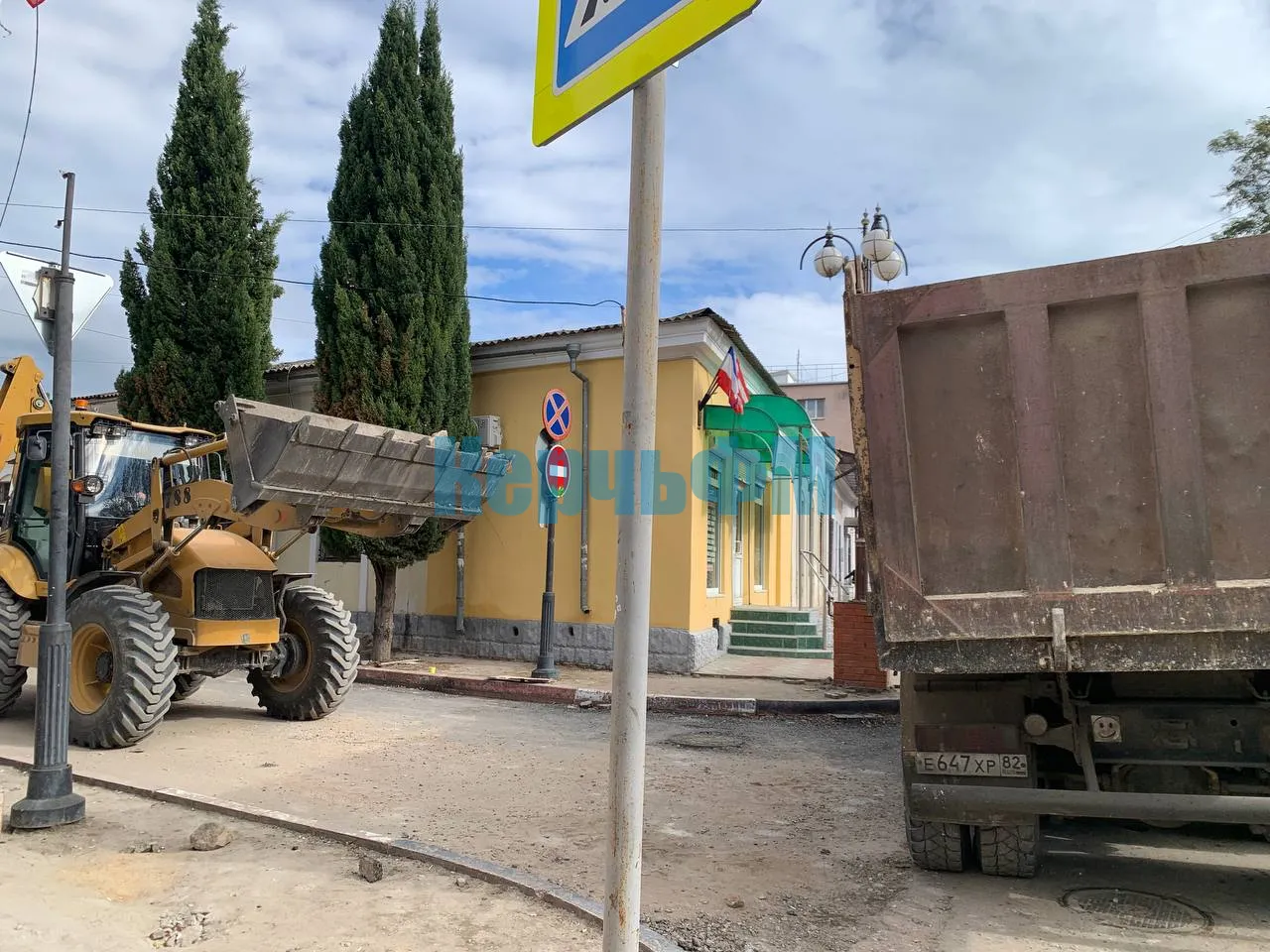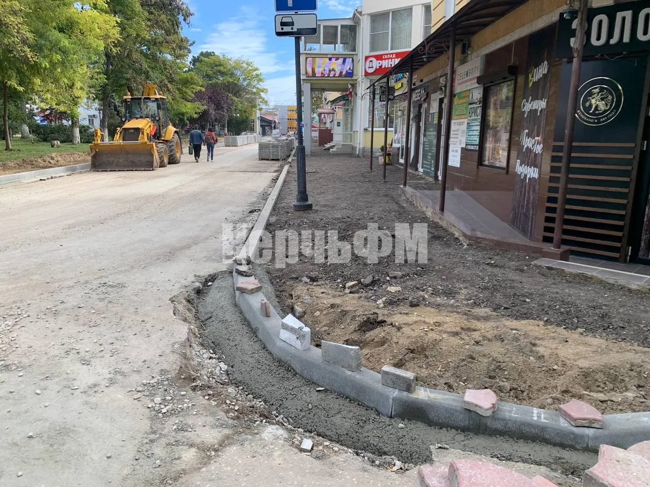 Работает тяжелая техника и практически все готово к укладке нового асфальта и мощению тротуаров, передает КерчьФМ.
