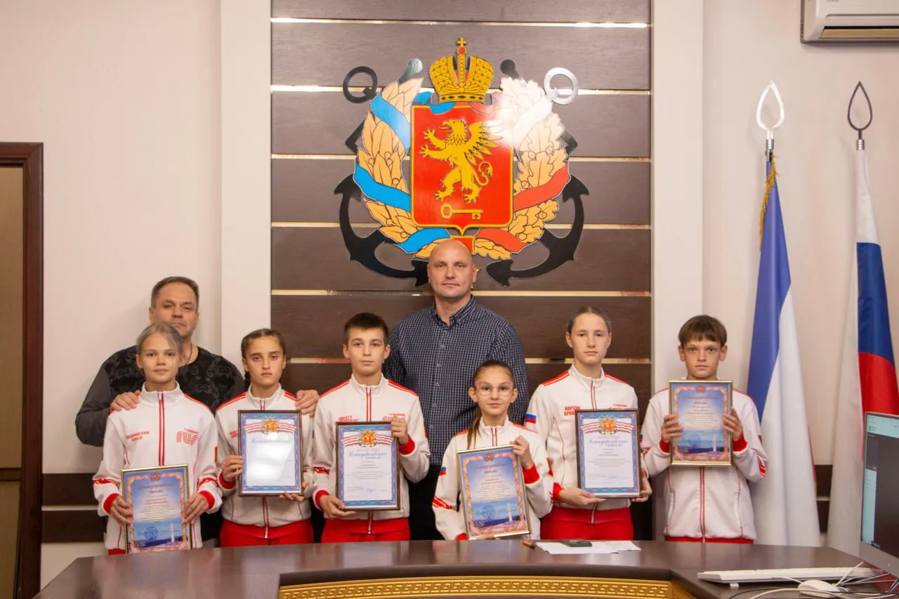 Глава муниципального образования Денис Колесник поздравил призеров Первенства России, победителей и призеров Всероссийских юношеских игр, Первенства ЮФО, Всероссийских соревнований.