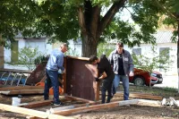 В сквере Солнечный уже второй раз за месяц рабочие сняли карусель. Предыдущий ремонт был выполнен 1 октября, и сейчас игровой элемент снова нуждается в восстановлении. Также ведутся ремонт карусели, которая вскоре вернется на свое место, на улицу Горького, 2-Б.