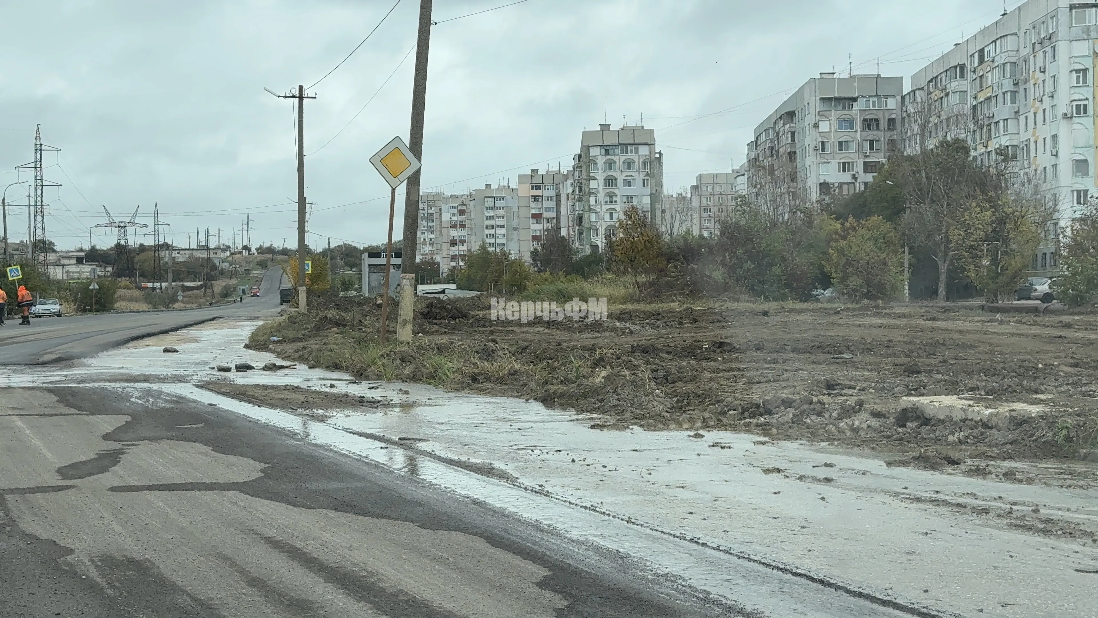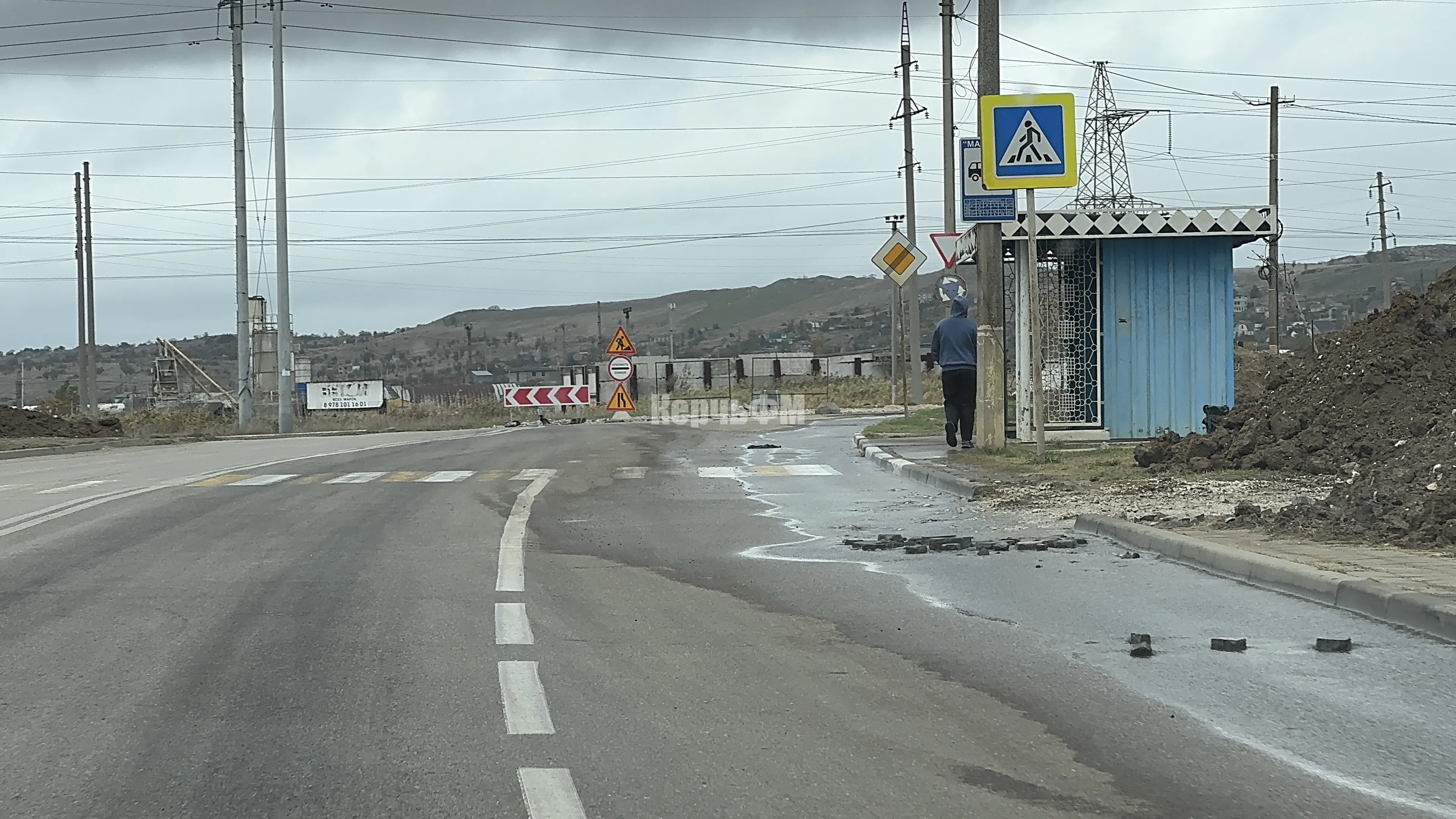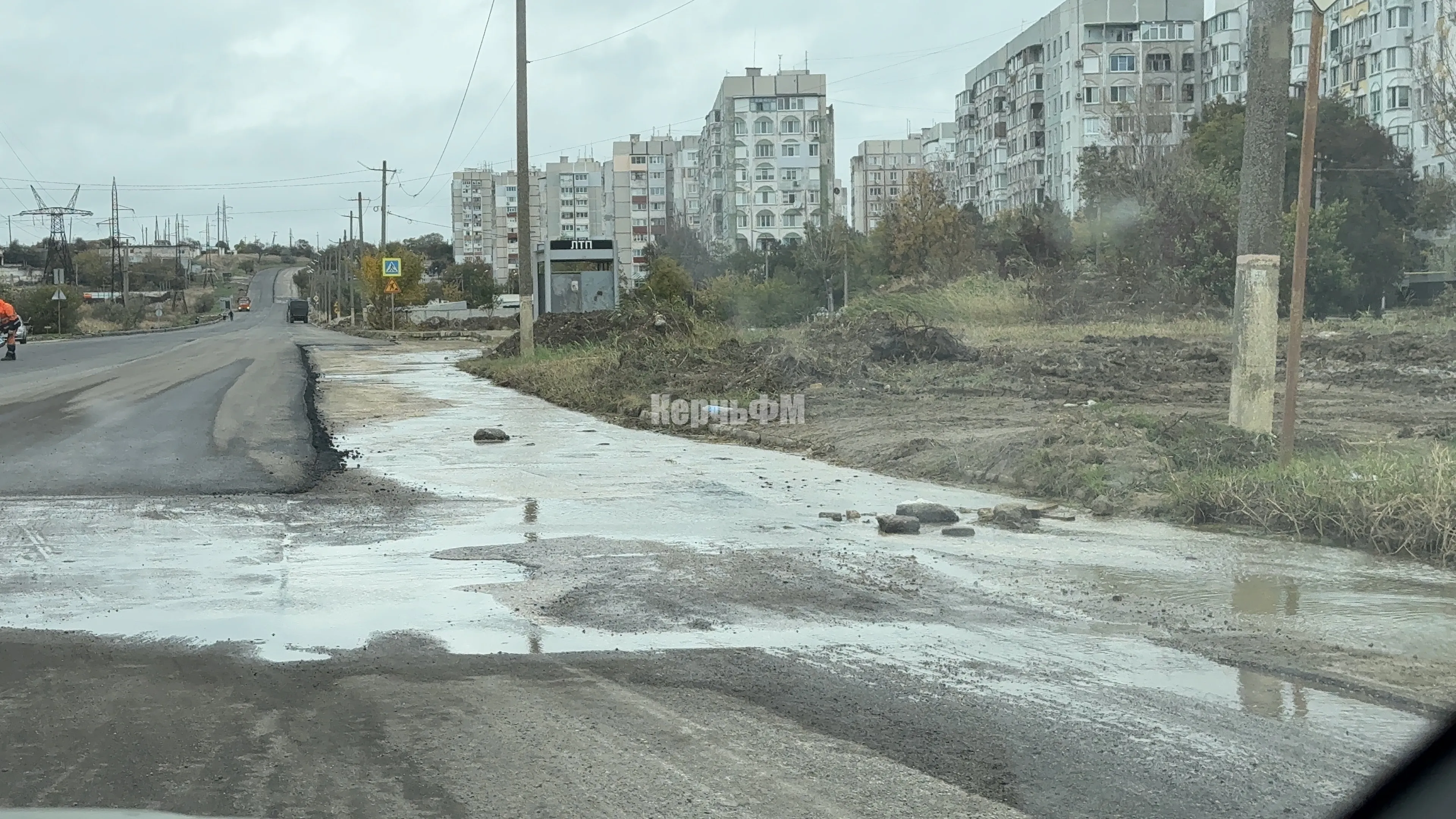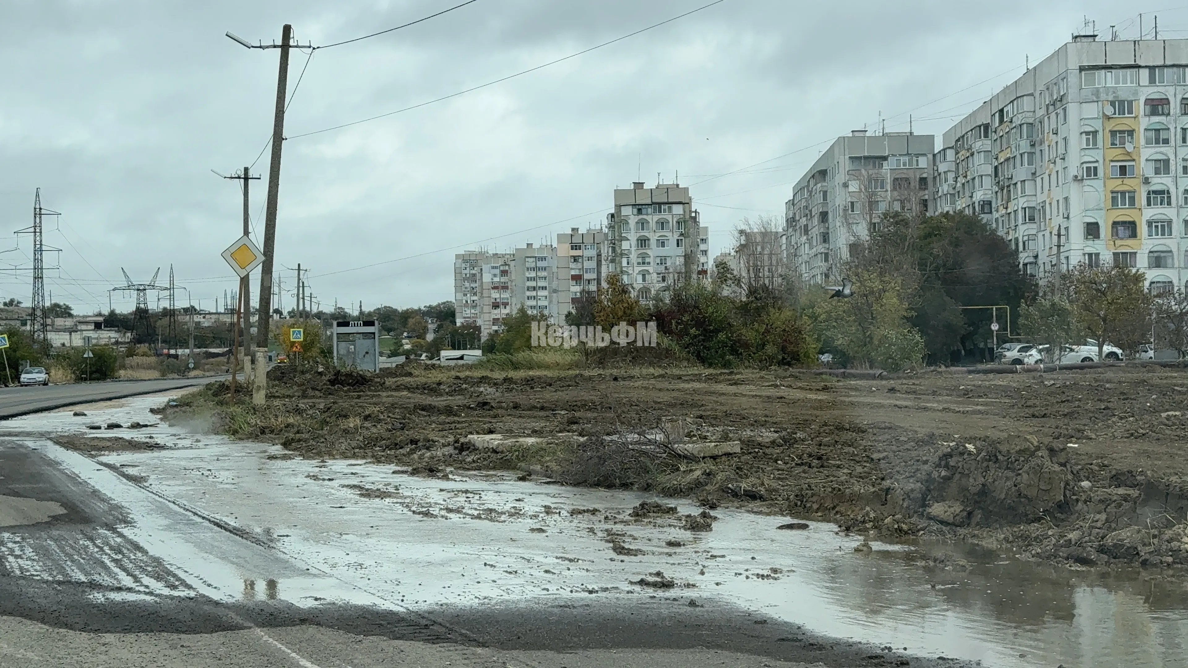 В Керчи на Индустриальном шоссе так и не могут устранить озеро